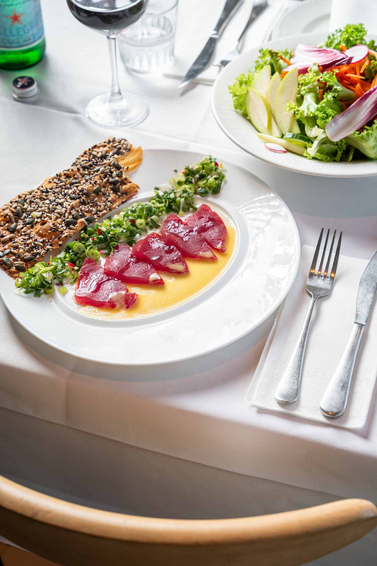 התפריט של המסעדה מורכב ממנות דגים טריות ומבחר מנות בשרים משובחות.